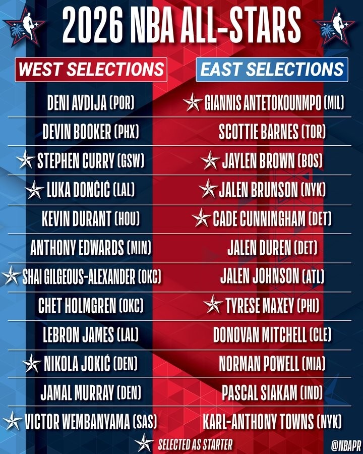 2月2日讯今日,NBA官方公布了本赛季全明星赛的替补名单。